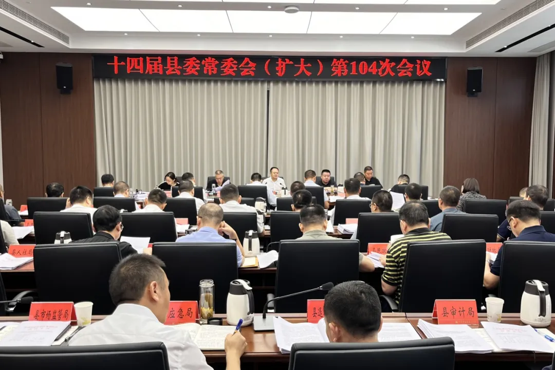 7月26日,市人民政府副市长、县委书记张世忠主持召开十四届县委常委会(扩大)第104次会议。县委副书记、县长任云,县人大常委会主任冯明,县政协主席李汀,县委副书记赵丹参加会议。