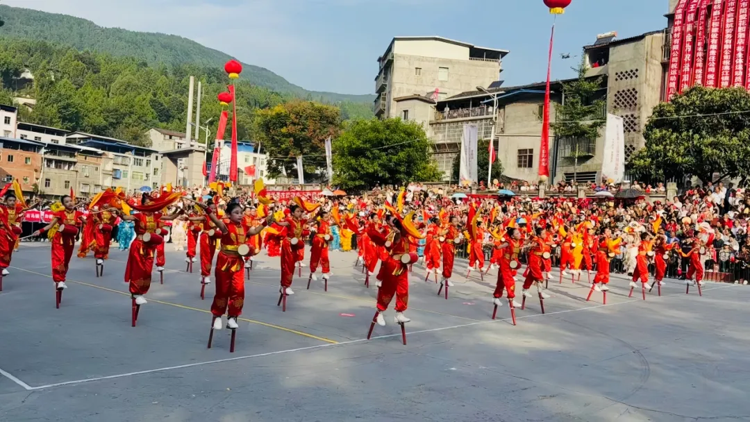 开幕式上,群舞《龙跃梨花》拉开了文艺演出的序幕,狮舞高跷《金狮献瑞》、军体拳《青春跃起来》、歌伴舞《欢天喜地庆丰收》等丰富多彩的活动,全景展现新时代农民精神风貌,生动诠释乡村振兴的丰硕成果和农民体育事业的蓬勃发展,大家欢聚一堂,共享运动的乐趣和丰收的喜悦。随后,国旗、会旗方阵入场,31支乡镇农民代表队带着丰收的喜悦和昂扬的斗志,迈着铿锵的步伐入场;裁判员代表、运动员代表分别作了宣誓。