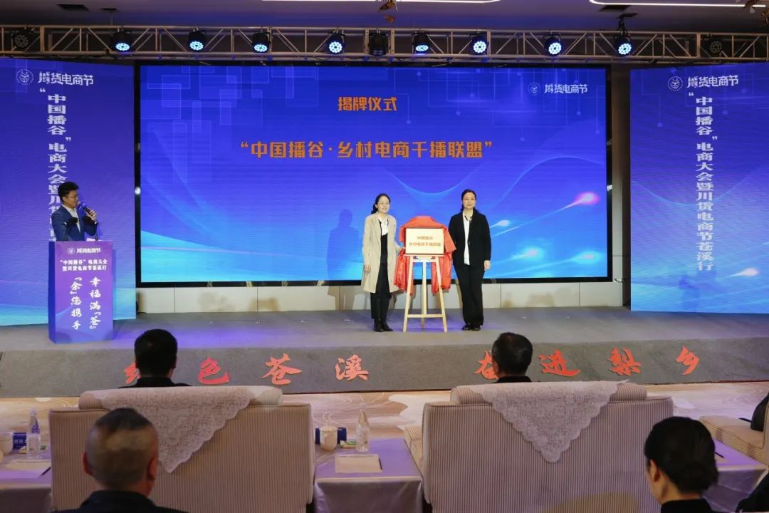 活动还举行了“浙江卫视(中国蓝新平台)村播实训基地”授牌仪式、“四川省39帮扶村播培训学院苍溪分院”授牌仪式、“中国播谷·乡村电商千播联盟”揭牌仪式。最后,“中国播谷”电商大会暨川货电商节苍溪行活动在全体与会人员的共同见证下正式启动。