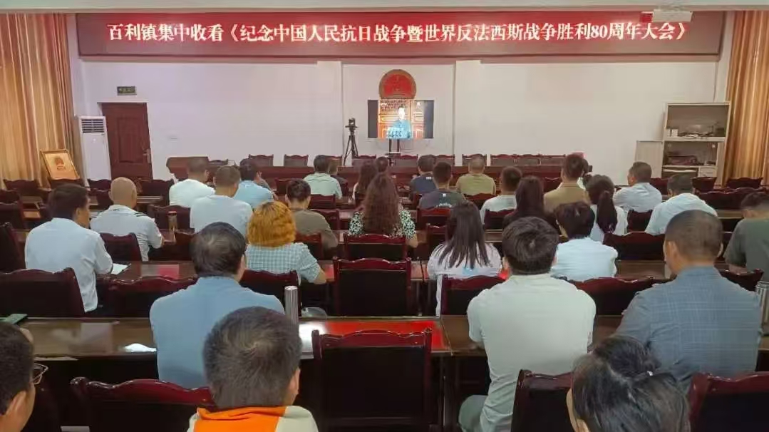 百利镇集中观看纪念中国人民抗日战争暨世界反法西斯战争胜利80周年大会实况直播。