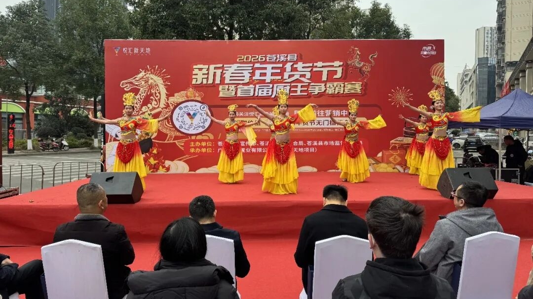 1月23日上午,2026年苍溪县新春年货节暨首届厨王争霸赛在悦汇新天地营销中心及金湾国际金湾路开幕。本次活动以“品年味、购年货、赛厨艺、迎新春”为主题,打造集购物、美食、文化、娱乐于一体的新春嘉年华,不仅为全县群众营造欢乐祥和的节日氛围,更有效激发市场消费活力,为新春消费市场注入新动能。